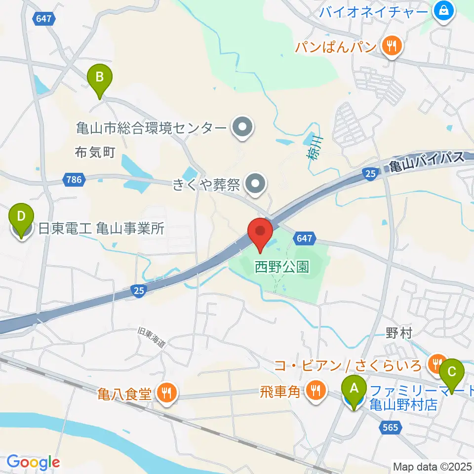 亀山市西野公園体育館周辺のコンビニエンスストア一覧地図