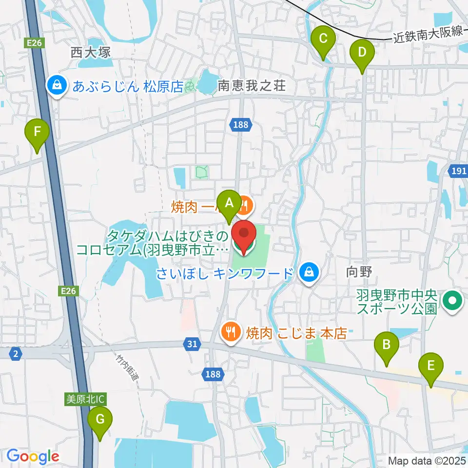 タケダハムはびきのコロセアム周辺のコンビニエンスストア一覧地図