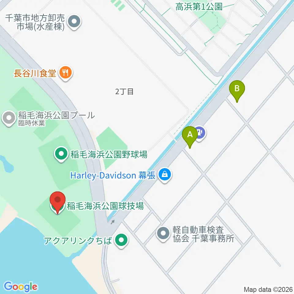 稲毛海浜公園球技場周辺のコンビニエンスストア一覧地図