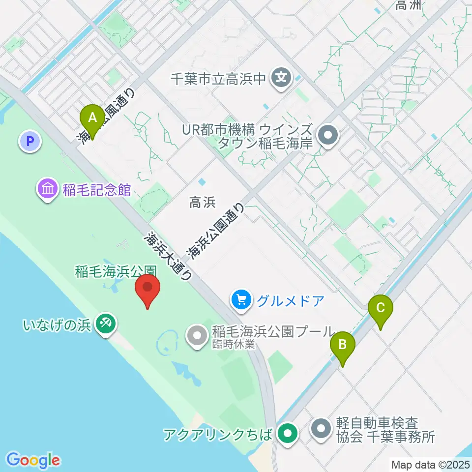稲毛海浜公園多目的広場周辺のコンビニエンスストア一覧地図