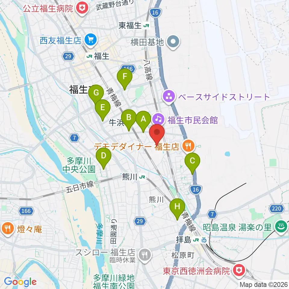 福生市郷土資料室周辺のコンビニエンスストア一覧地図