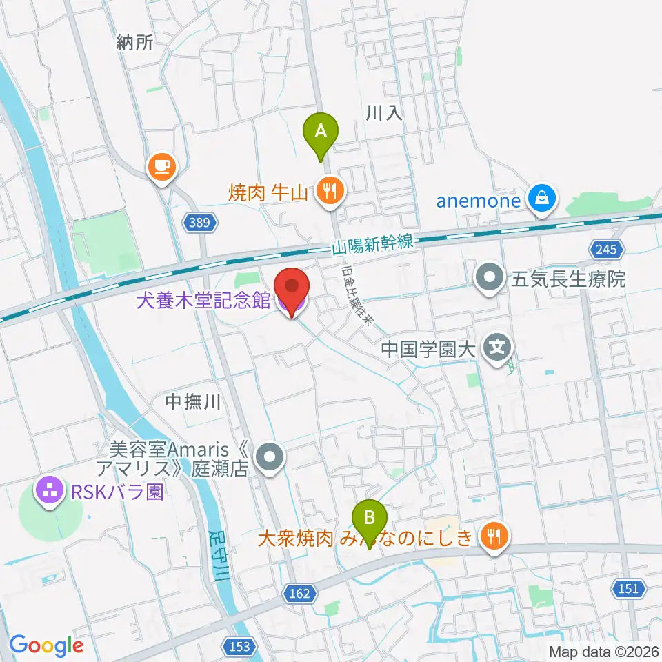 犬養木堂記念館周辺のコンビニエンスストア一覧地図
