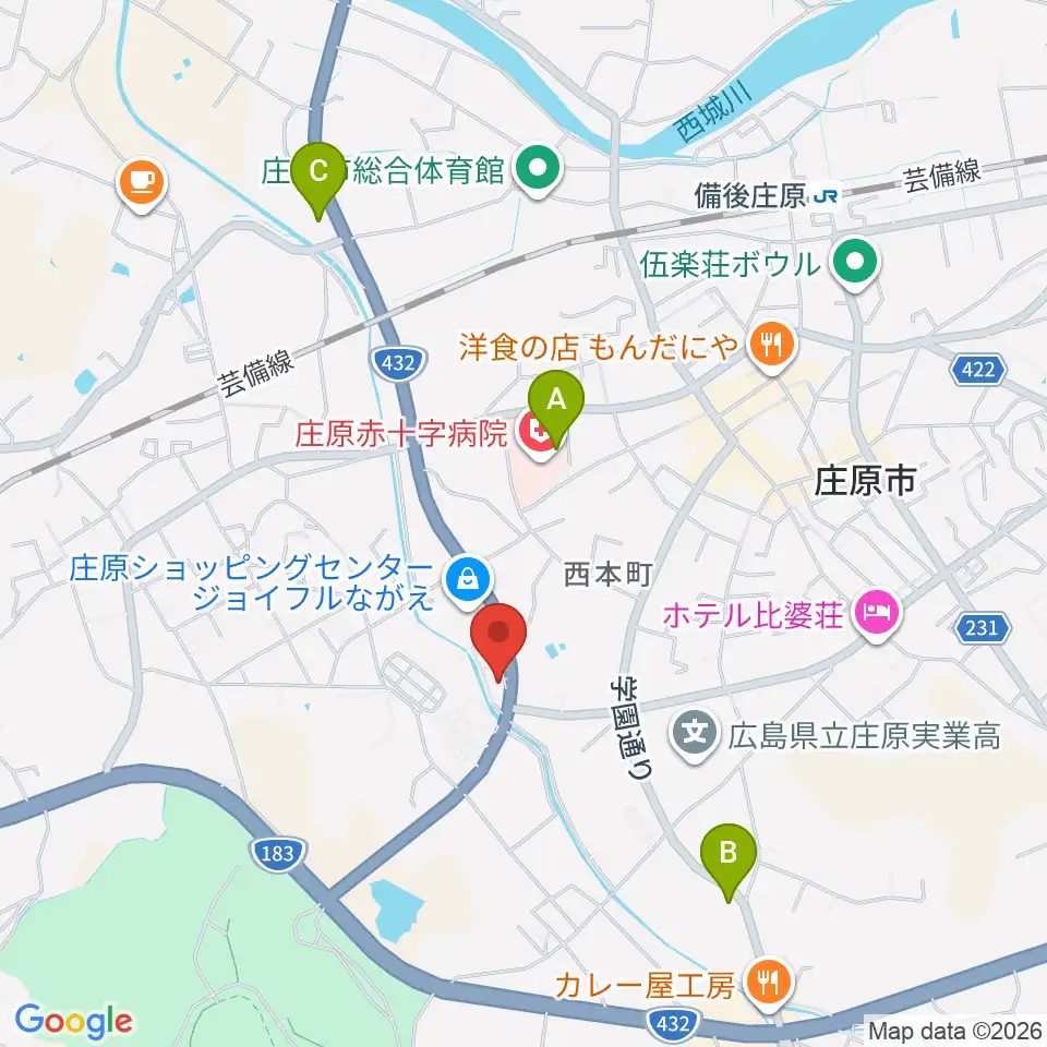 庄原市歴史民俗資料館周辺のコンビニエンスストア一覧地図