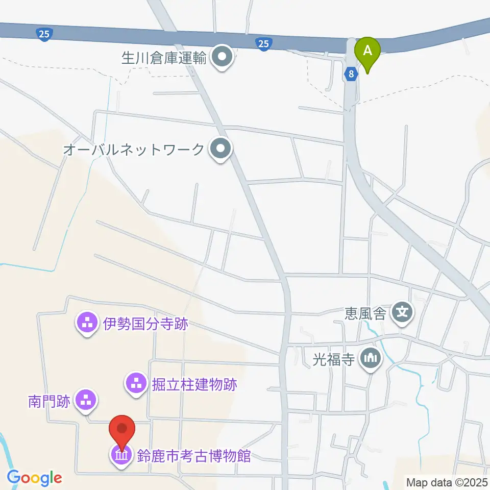 鈴鹿市考古博物館周辺のコンビニエンスストア一覧地図