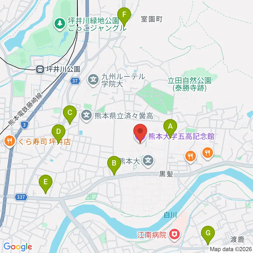 熊本大学五高記念館周辺のコンビニエンスストア一覧地図