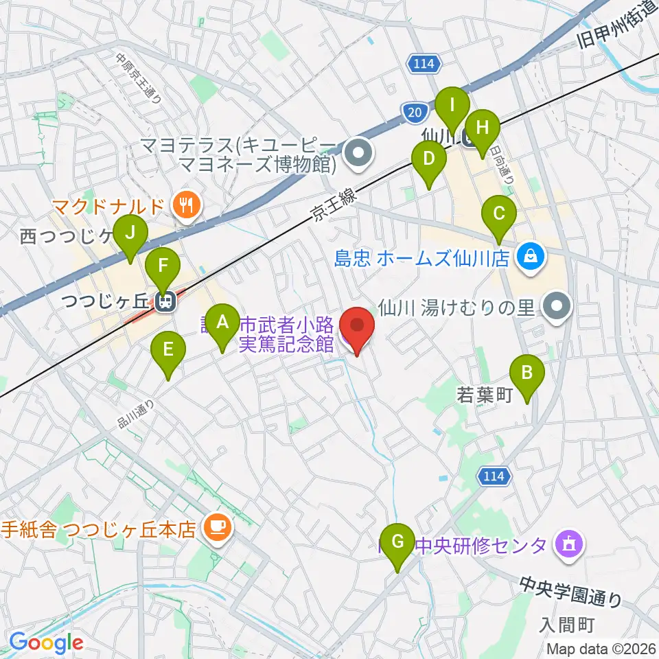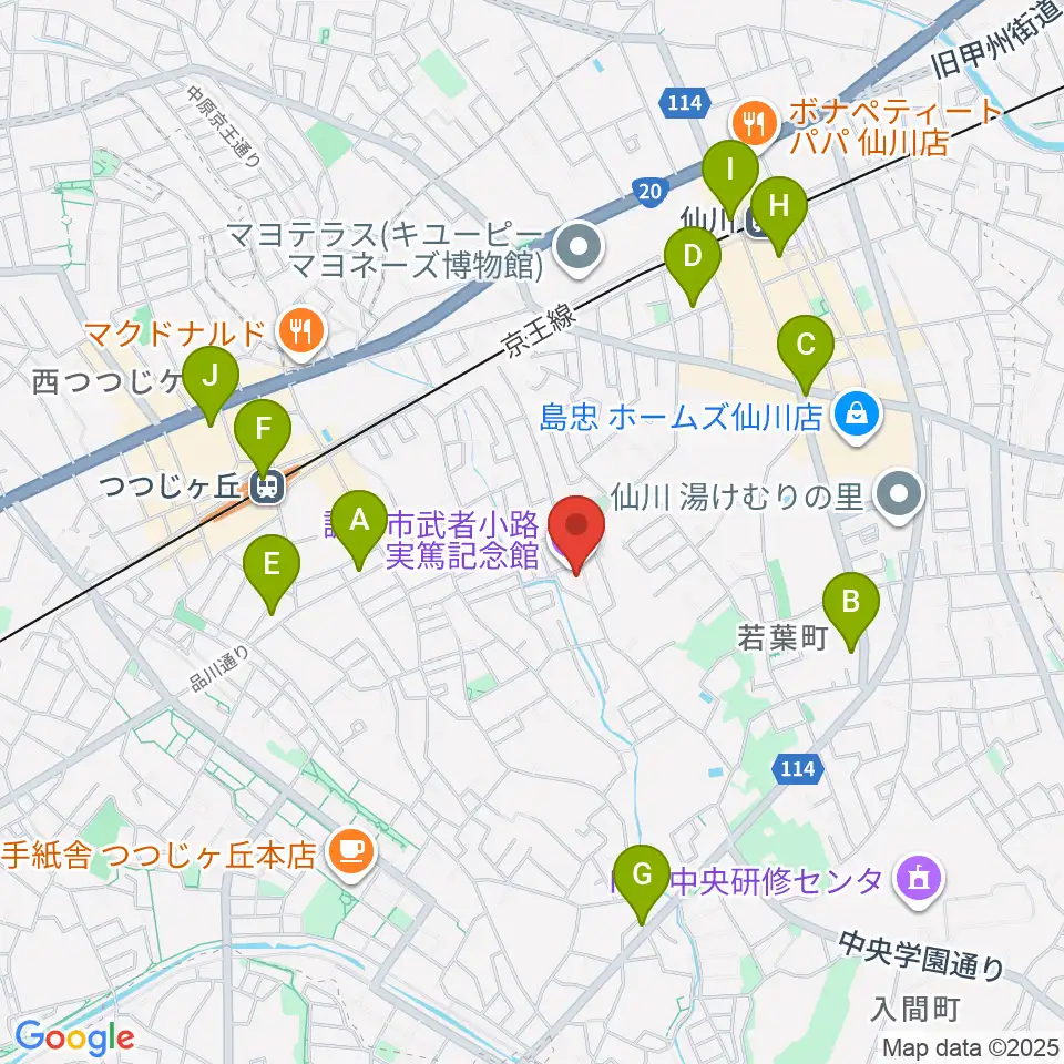 調布市武者小路実篤記念館周辺のコンビニエンスストア一覧地図