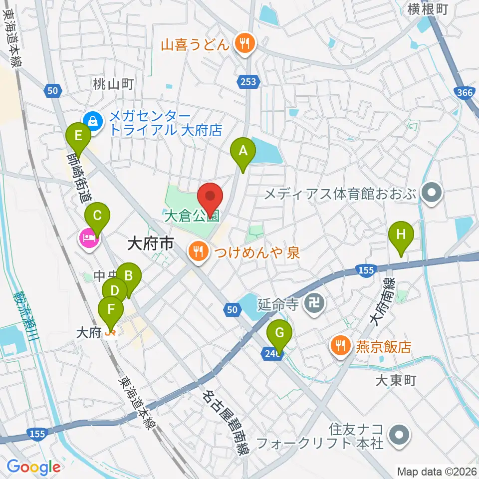 大府市歴史民俗資料館周辺のコンビニエンスストア一覧地図