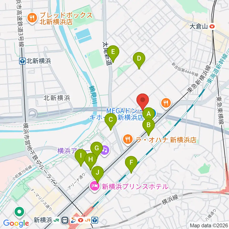 横浜市港北スポーツセンター周辺のコンビニエンスストア一覧地図