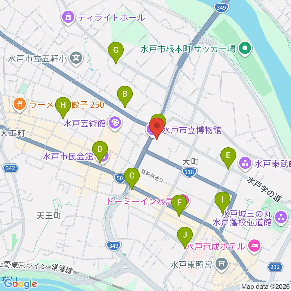 水戸市立博物館周辺のコンビニエンスストア一覧地図