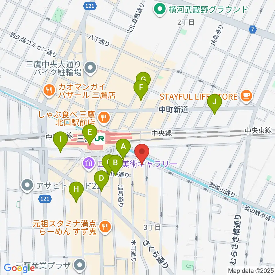 ヤマノミュージックセンター三鷹周辺のコンビニエンスストア一覧地図