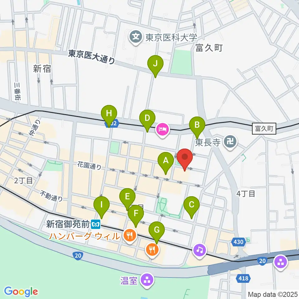 新宿ギター音楽院周辺のコンビニエンスストア一覧地図