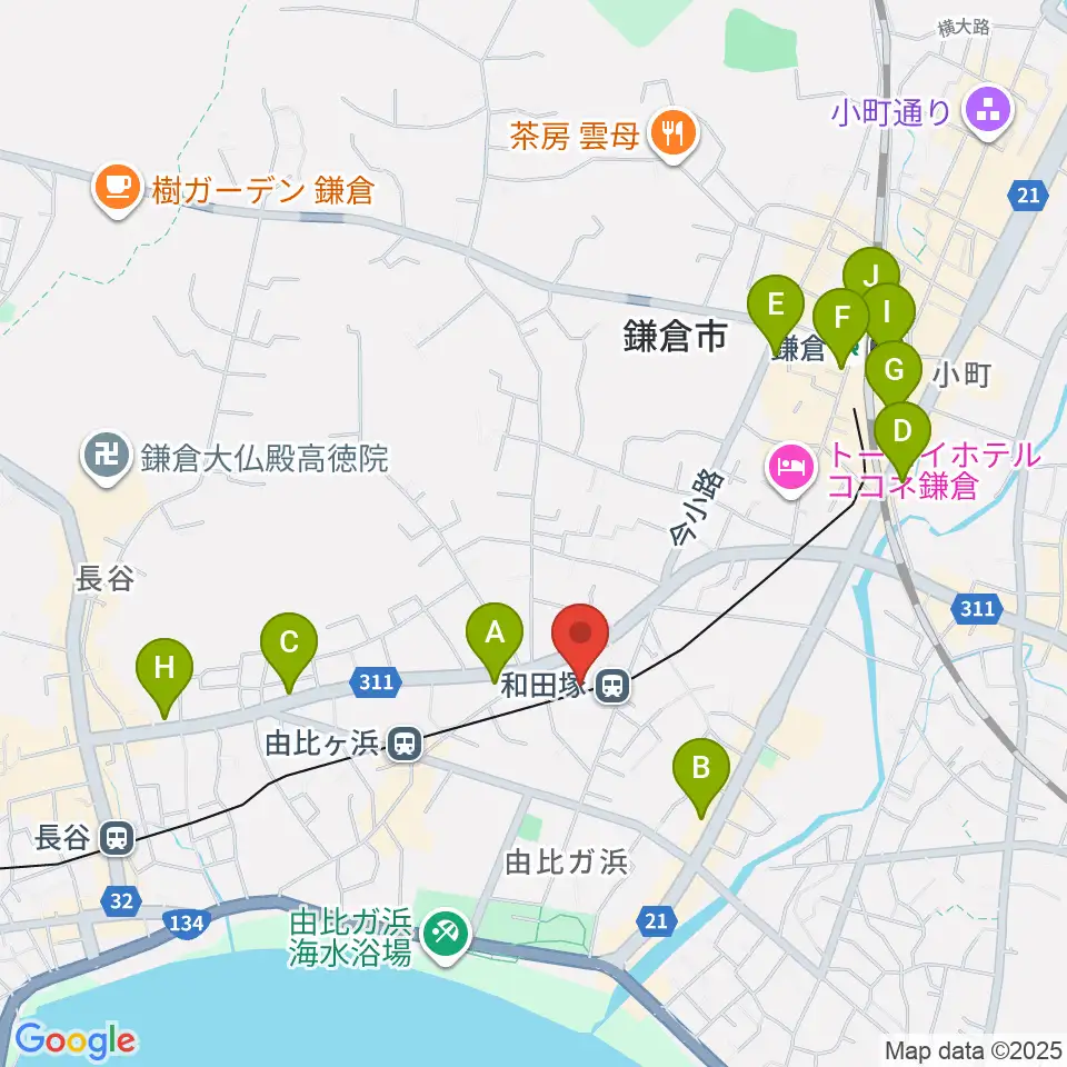 鎌倉アミ音楽教室周辺のコンビニエンスストア一覧地図