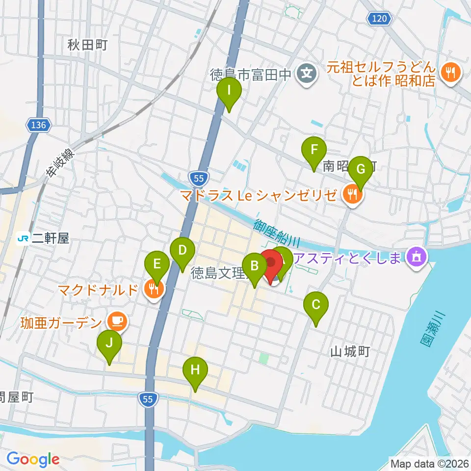 徳島文理大学音楽学部周辺のコンビニエンスストア一覧地図