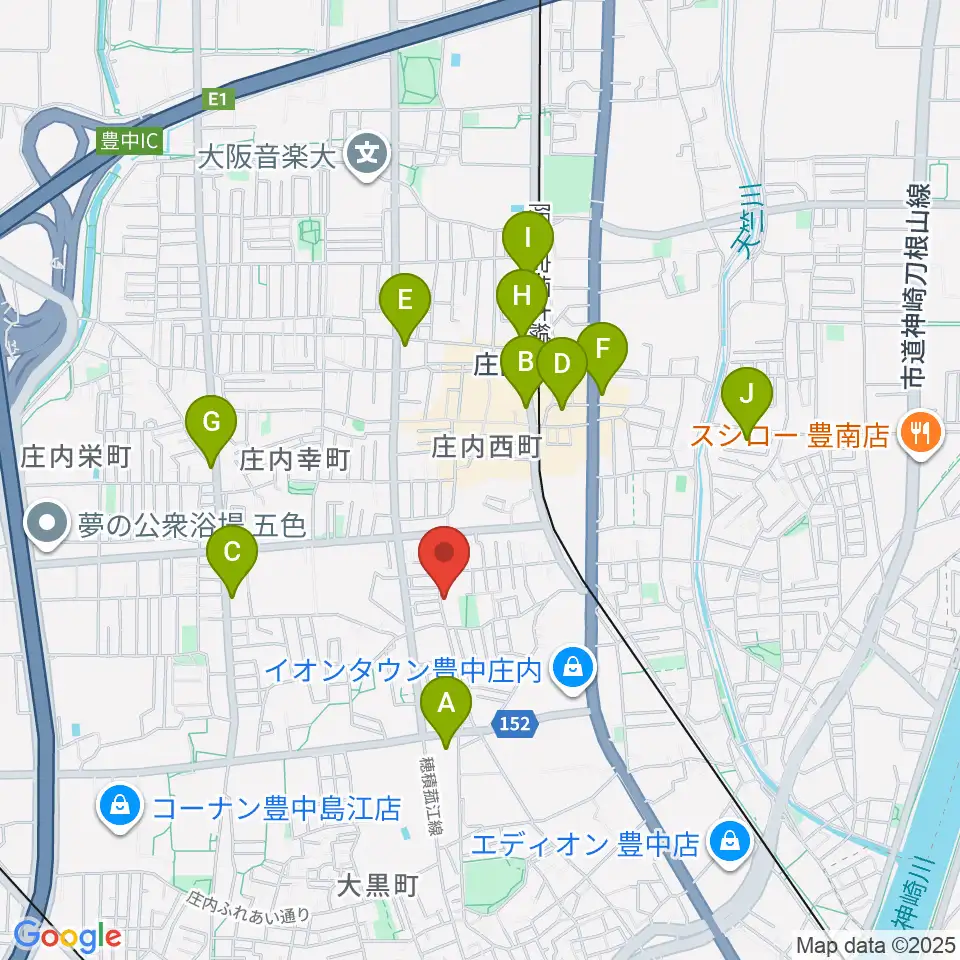 レイドバックミュージックスクール豊中校周辺のコンビニエンスストア一覧地図