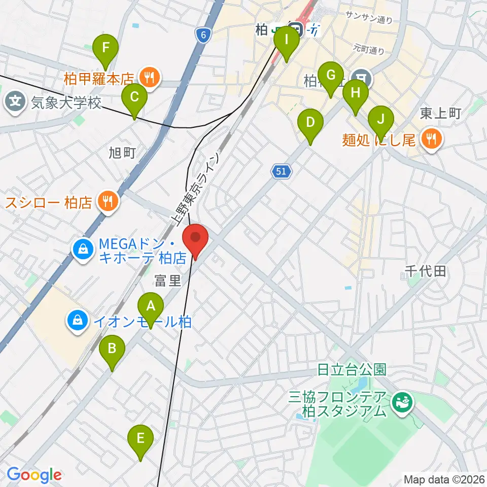 柏サンブアップ周辺のコンビニエンスストア一覧地図