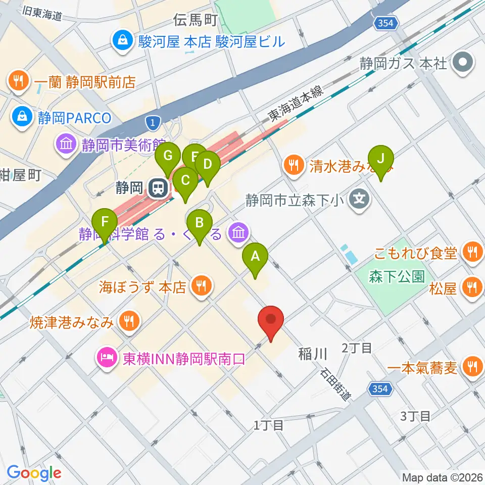 静岡サナッシュ周辺のコンビニエンスストア一覧地図