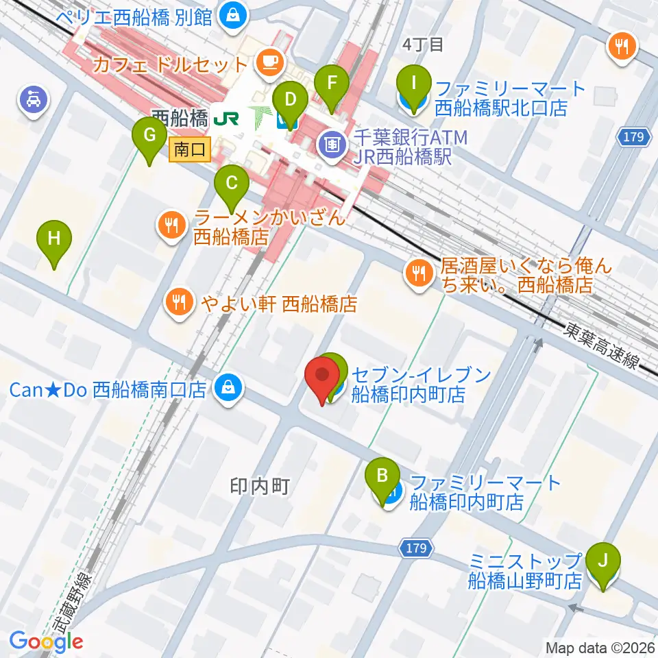 スタジオサン西船橋店周辺のコンビニエンスストア一覧地図