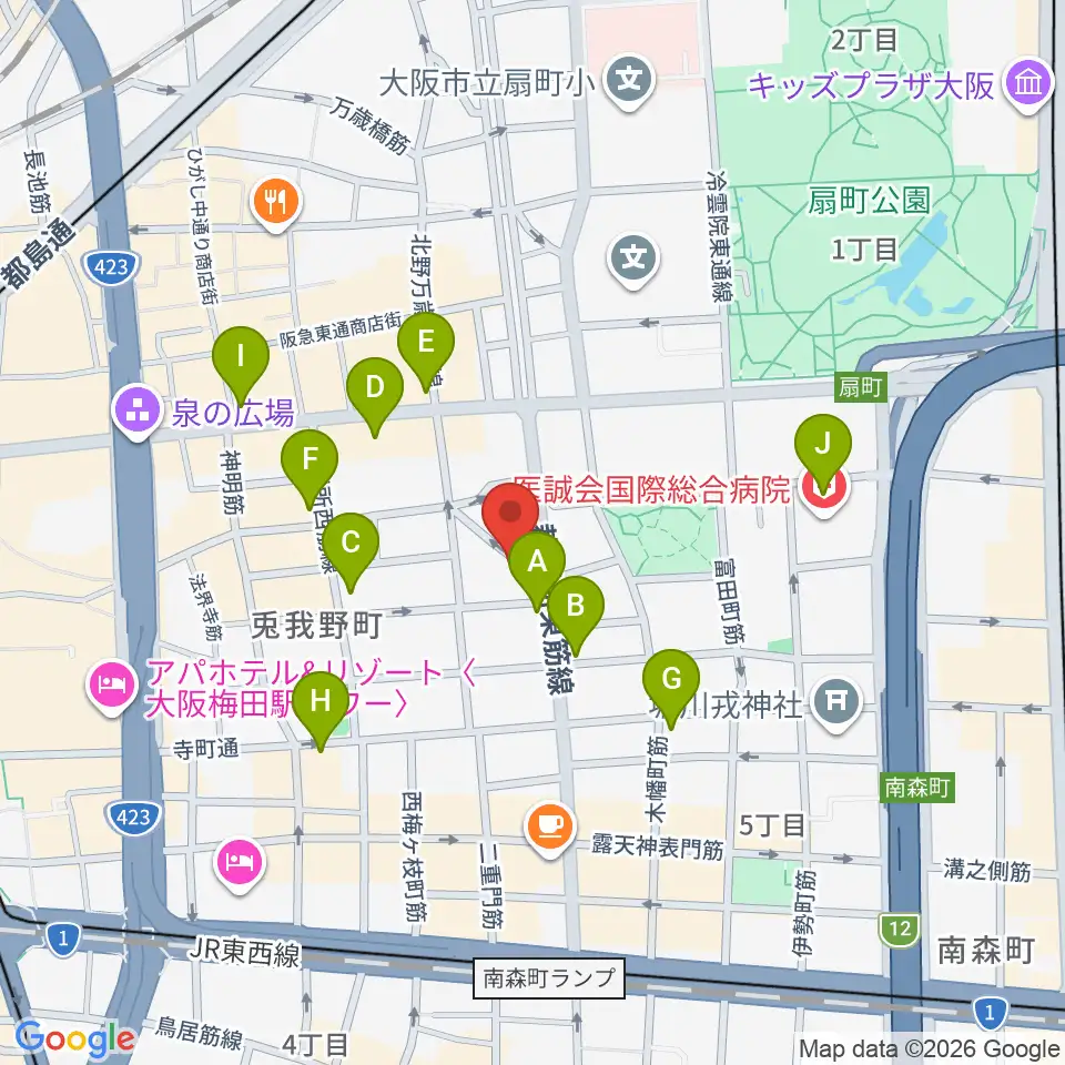 梅田ハードレイン周辺のコンビニエンスストア一覧地図