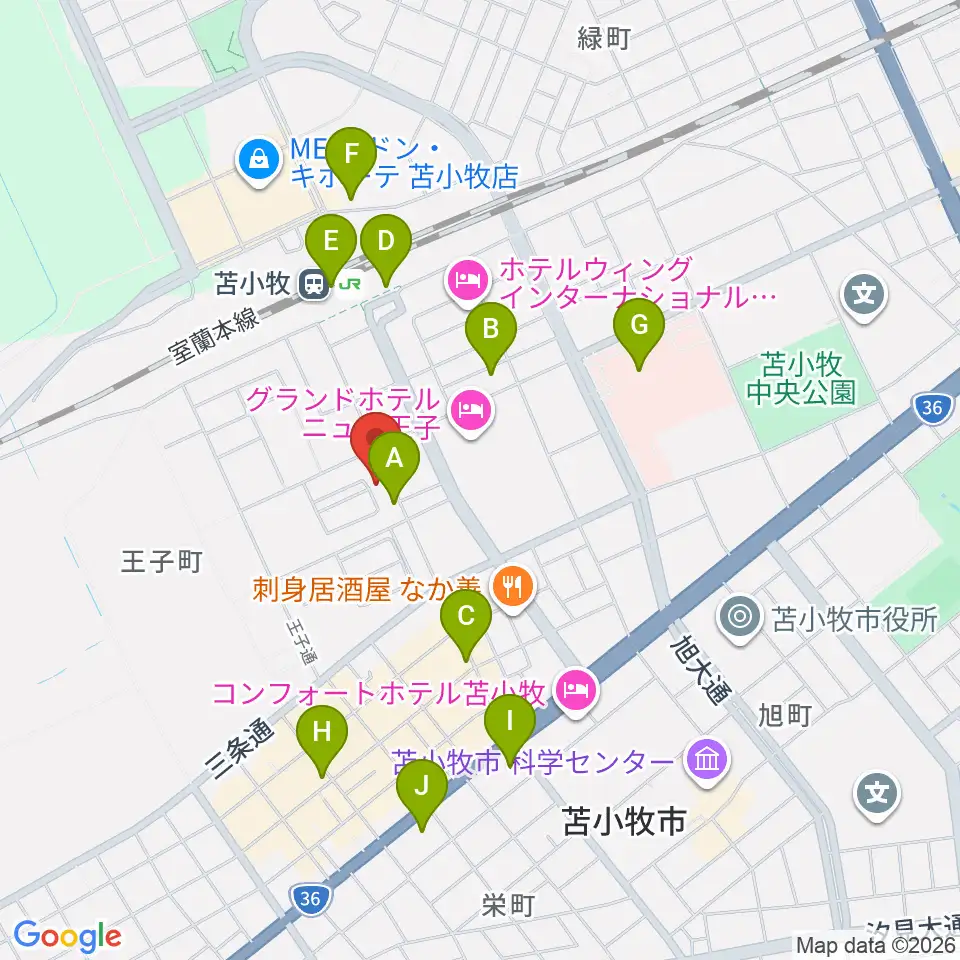 苫小牧エルキューブ周辺のコンビニエンスストア一覧地図