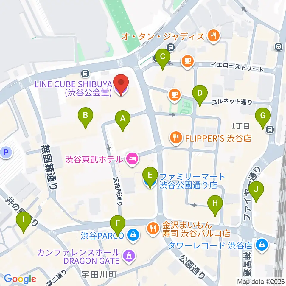 LINE CUBE SHIBUYA周辺のコンビニエンスストア一覧地図