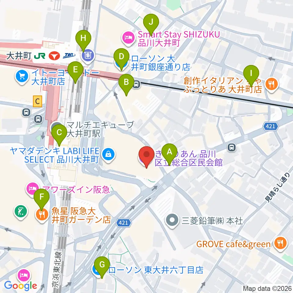 きゅりあん 品川区立総合区民会館周辺のコンビニエンスストア一覧地図