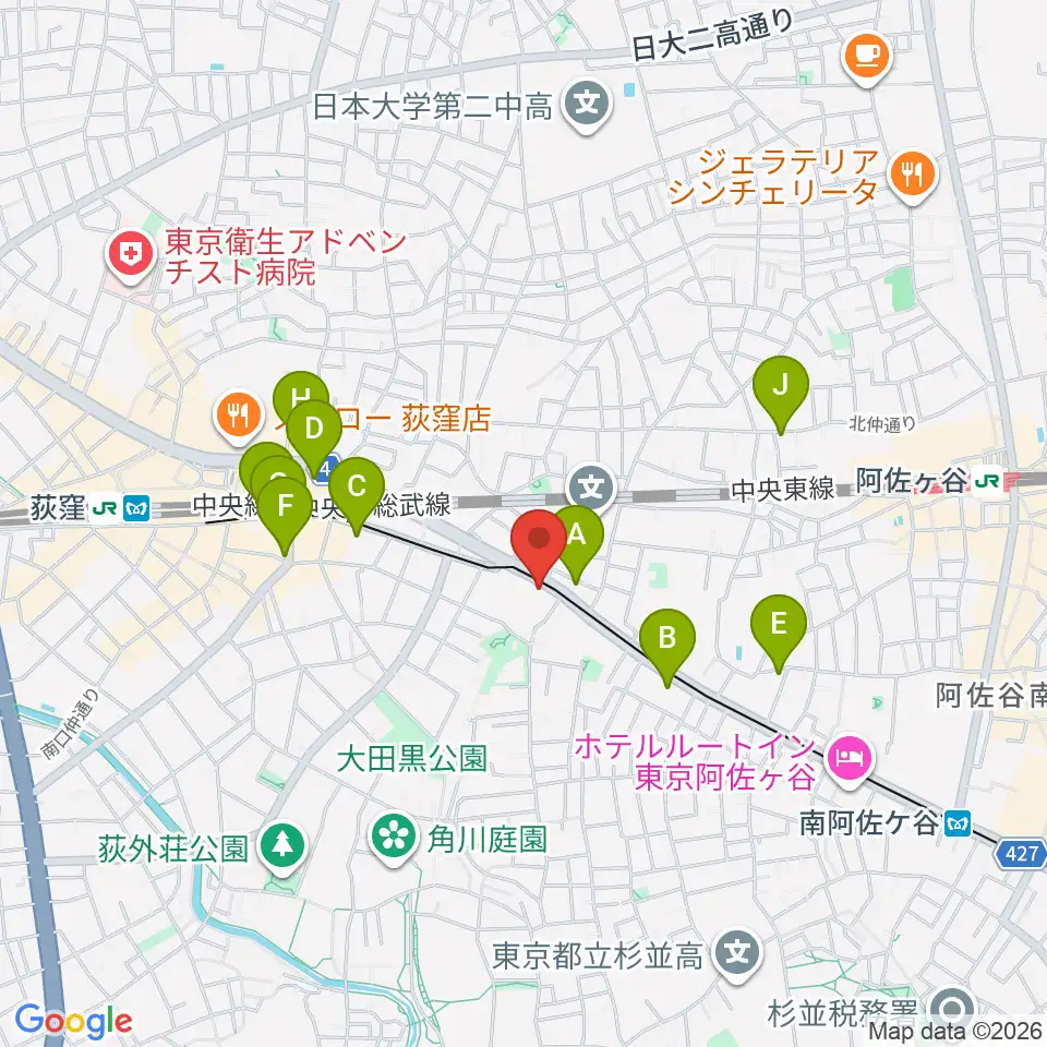 荻窪ベルベットサン周辺のコンビニエンスストア一覧地図