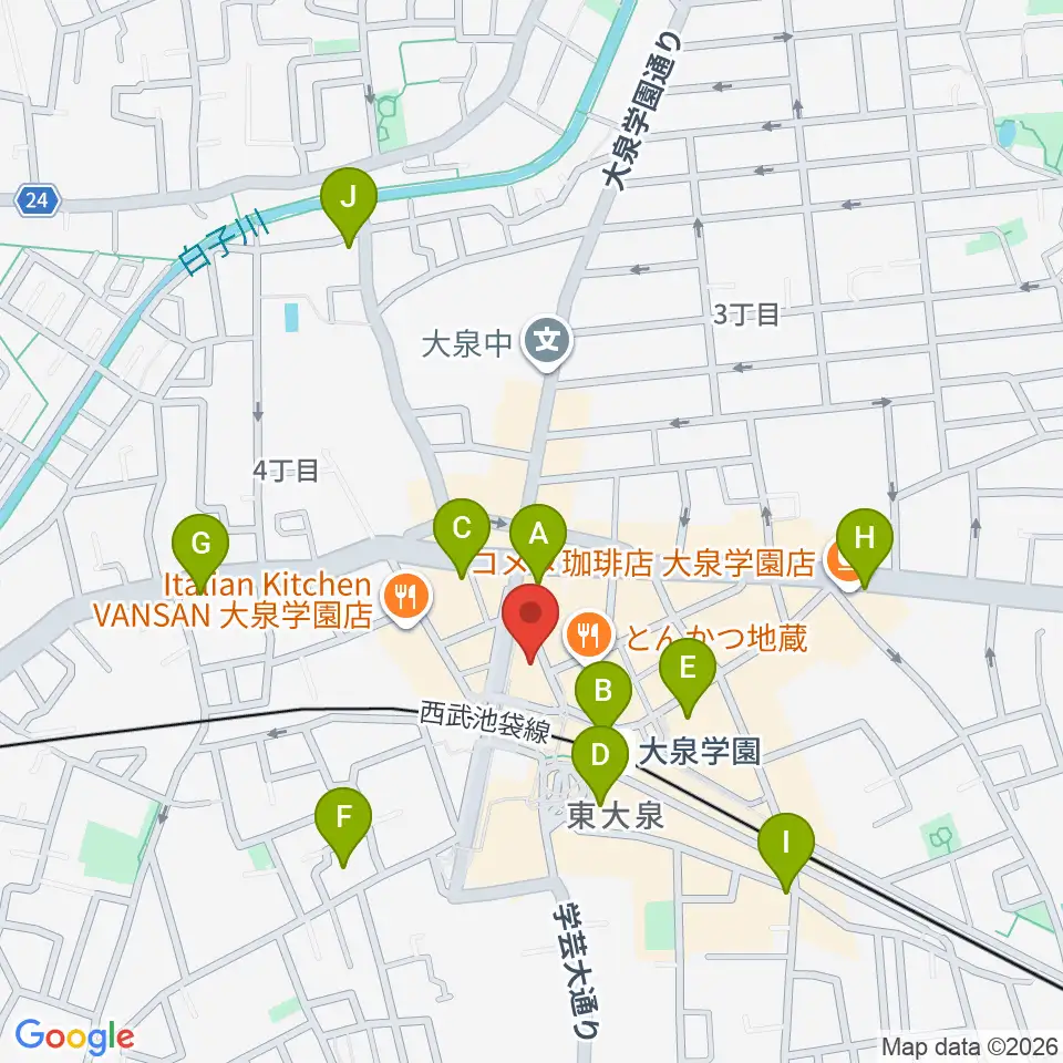 大泉学園ゆめりあホール周辺のコンビニエンスストア一覧地図