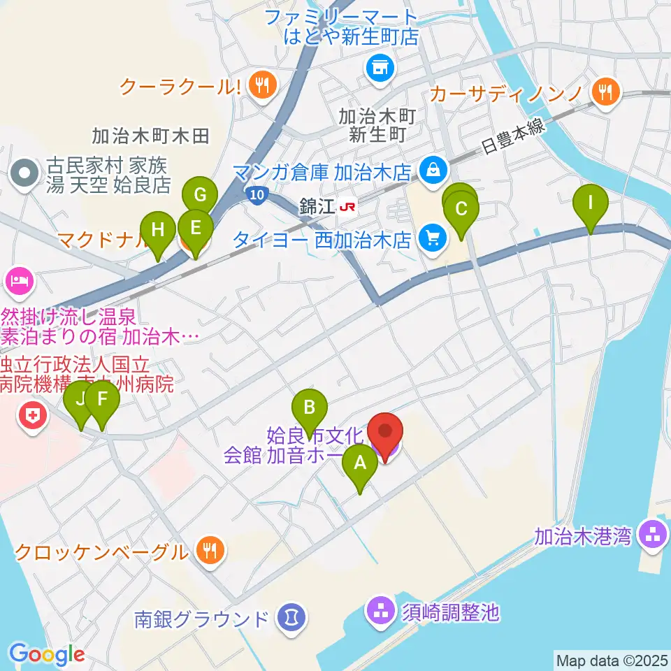 姶良市文化会館 加音ホール周辺のファミレス・ファーストフード一覧地図
